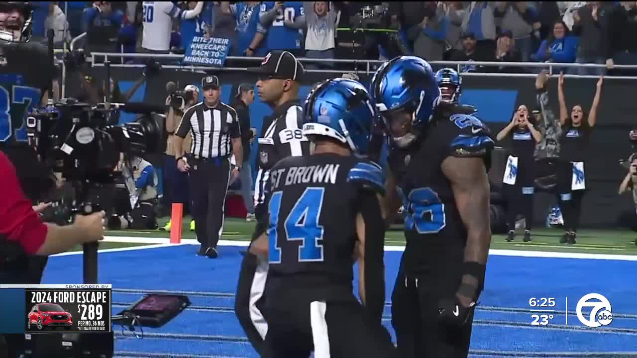 Giving the ball to Jahymr Gibbs. He scored three of his franchise-record tying four touchdowns in the second half, helping Detroit score the final 21 points of the regular-season finale to pull away from the 14-win Vikings.
